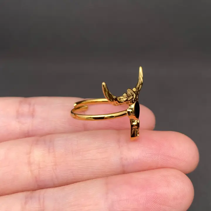 Enamel Bull Head 18K Gold Plated Stainless Steel Ring – Fgs