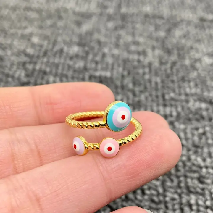 Enamel Evil Eye Gold Adjustable Rings quantity