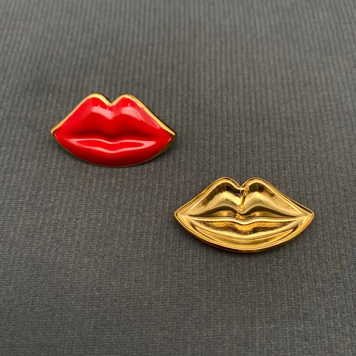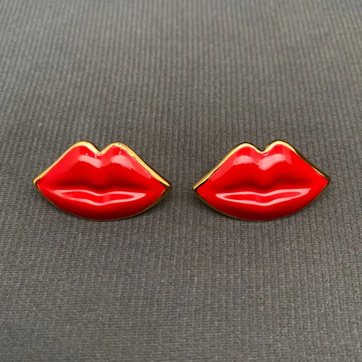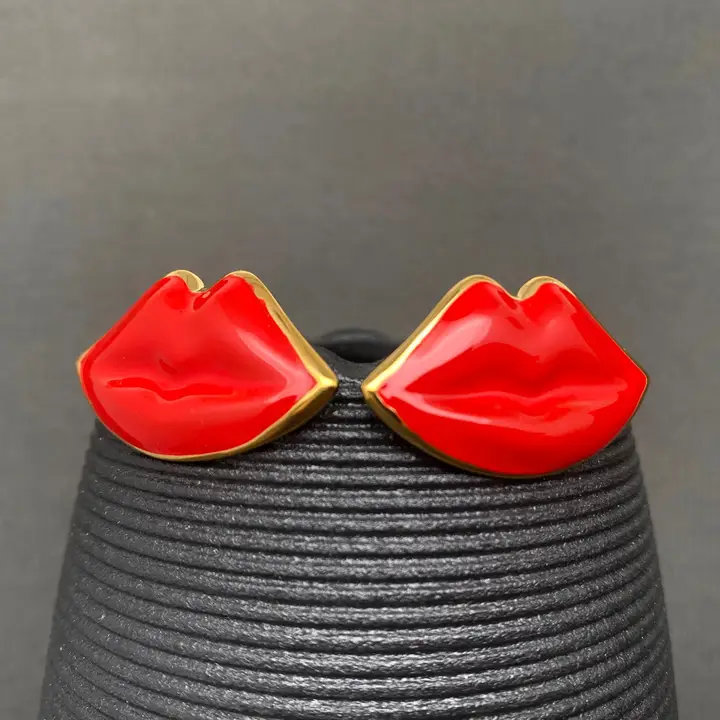 Enamel Red Lips 18K Gold Plated S.Steel Stud Earrings – Fgs