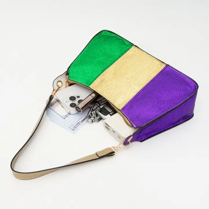 Faux Leather Mardi Gras Sparkle Front Shoulder Crossbody Bag