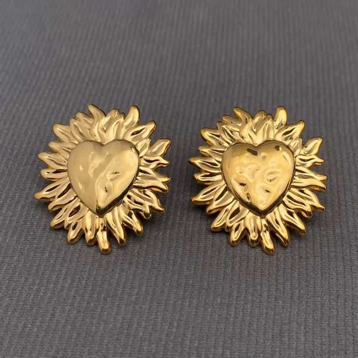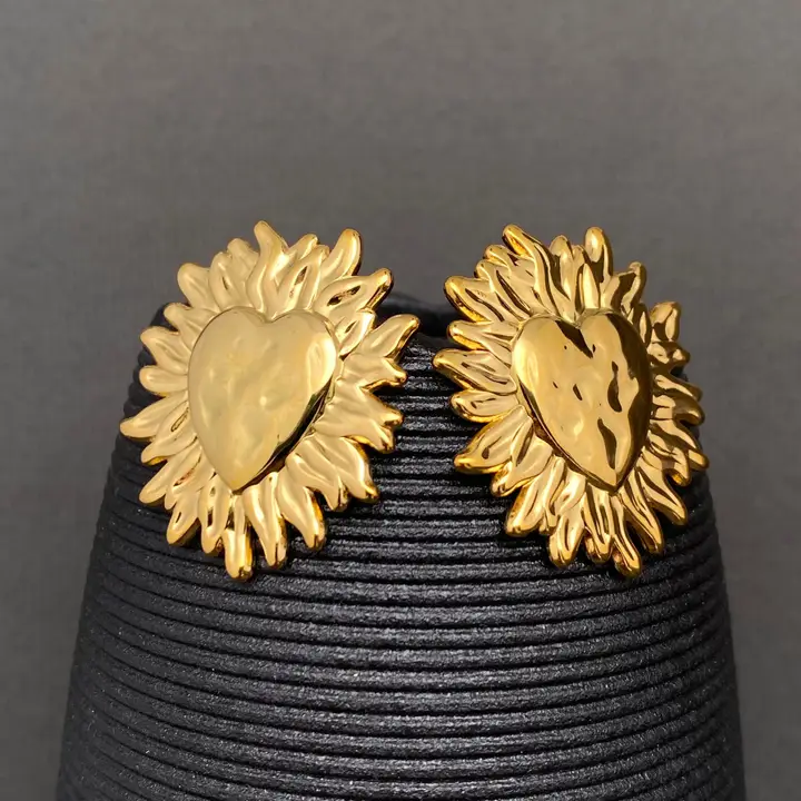 Fire Heart 18K Gold Plated Stainless Steel Post Earrings-Fgs quantity