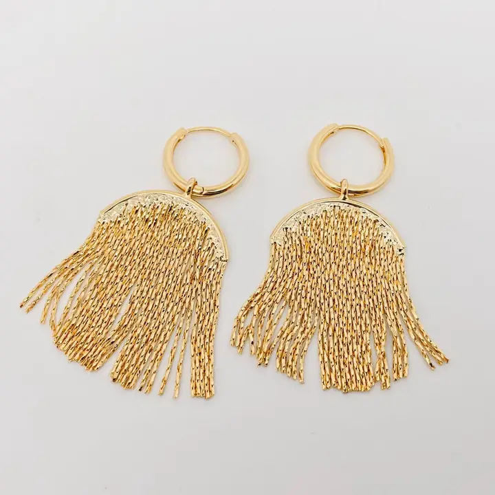 Gold Plated Metal Tassel Huggie Earrings quantity