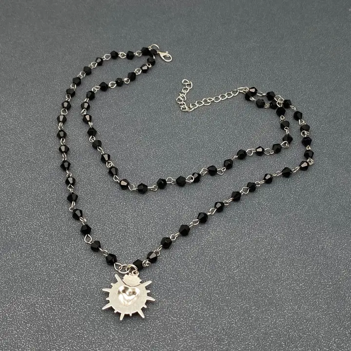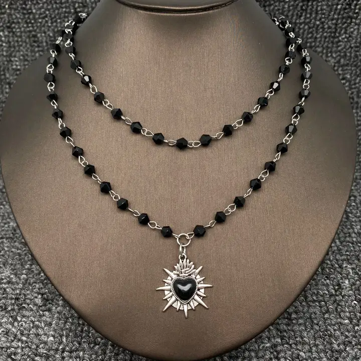 Gothic Black Heart Double Layered Crystal Beaded Necklace-Gt quantity