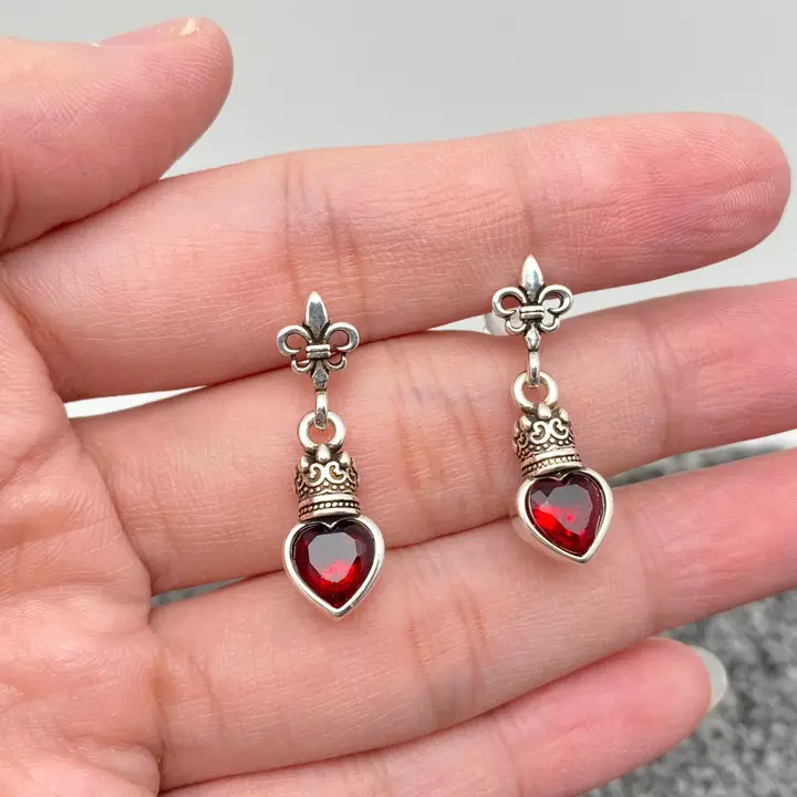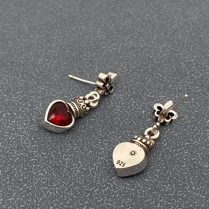 Gothic Style Red Heart Zircon Silver Plated Post Earrings-Gt quantity