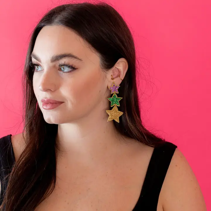 Mardi Gras Earrings – Seed Bead Triple Star Earrings