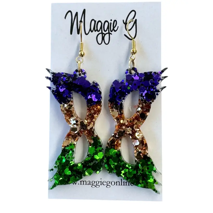 Mardi Gras Mask/ Handmade Resin and Glitter Earrings