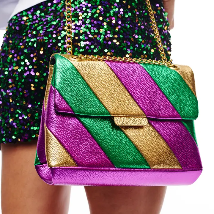 Faux Leather Mardi Gras Sparkle Front Shoulder Crossbody Bag