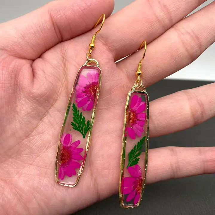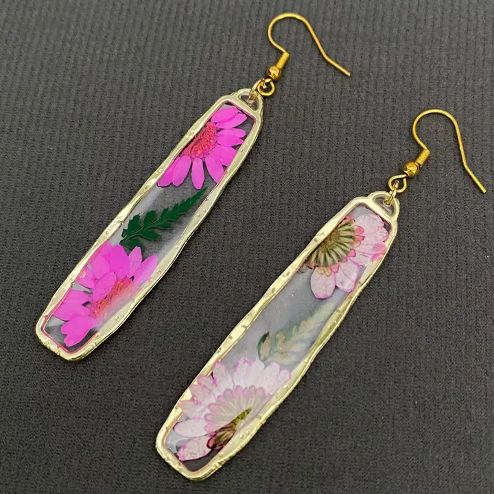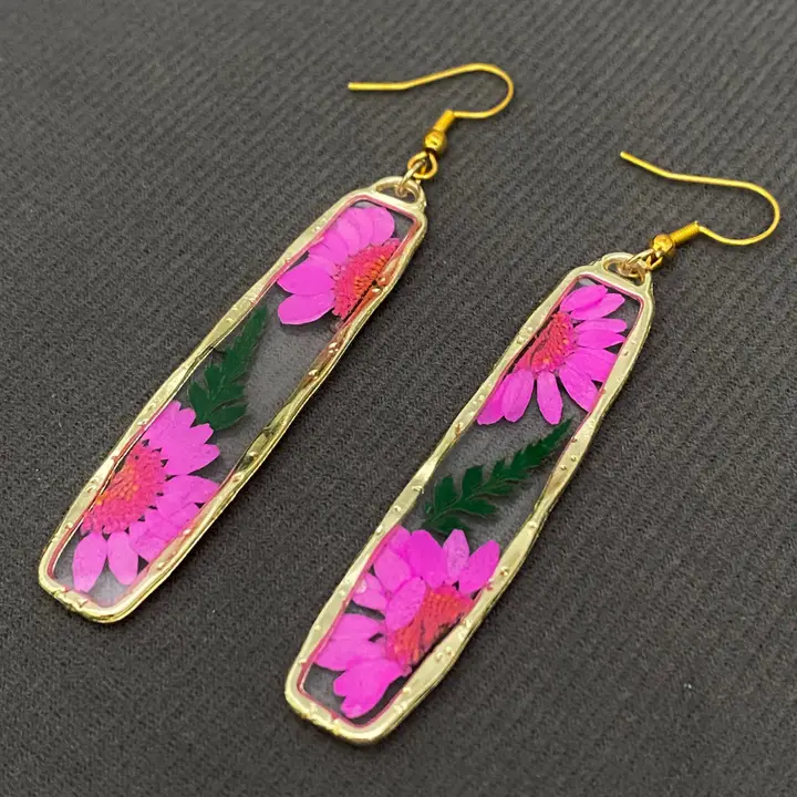 Pressed Dried Flower Long Rectangular Dangle Earrings – Pdf