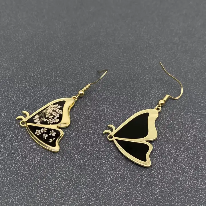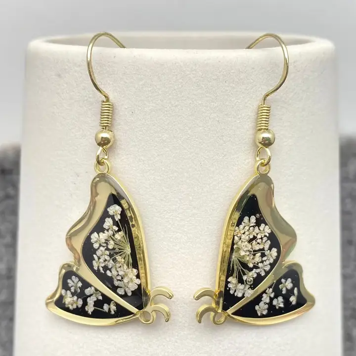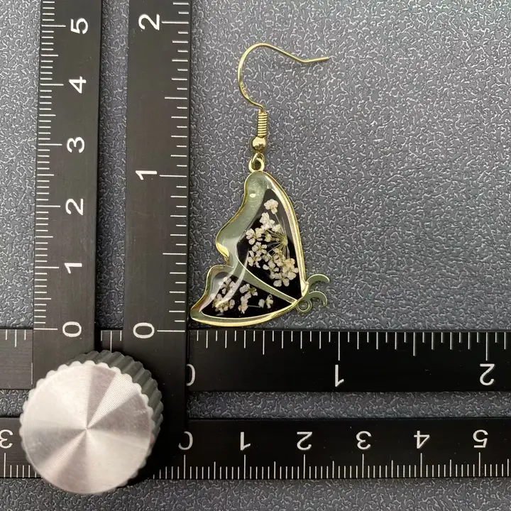 Queen Anne’s Lace Dried Flower Black Butterfly Earrings -Pdf