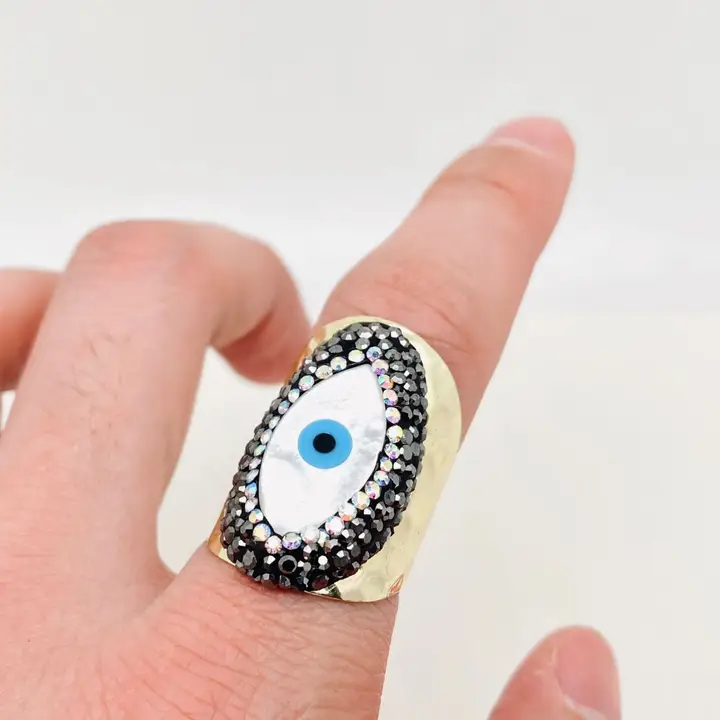 Turkish Eye Evil Eye Inlaid Rhinestone Shell Ring