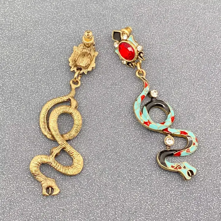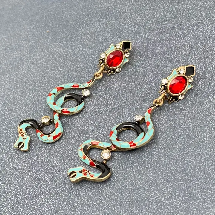 Vintage Colored Enamel Snake Dangle Earrings quantity