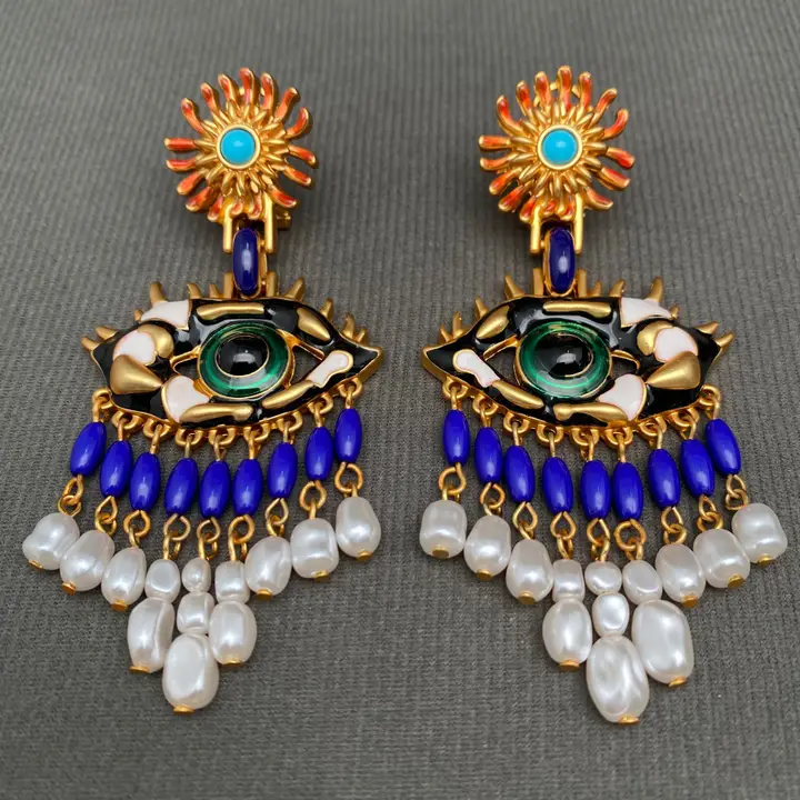 Vintage Pearl Fringe Eye Post Earrings with Ear Clips quantity