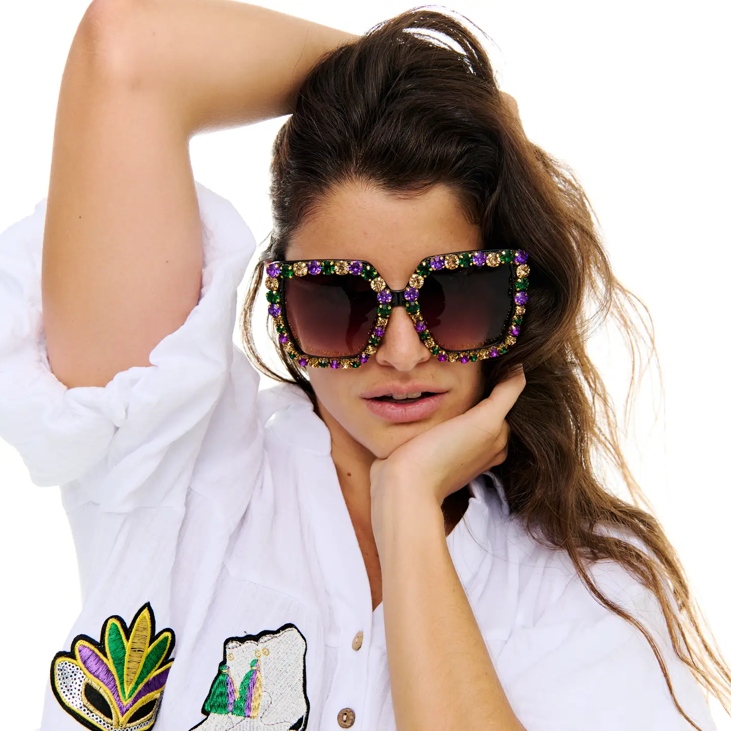 Wholesale Mardi Gras stone sunglasses Lg